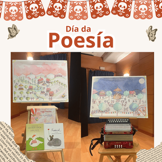 Para completar esta conmemoración, o alumnado colaborador da biblioteca montou un recunchiño con exemplares de libros de poesía para que todos e todas poidamos disfrutar deles!